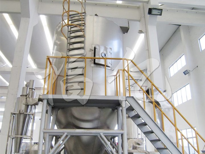 中藥浸膏高速離心噴霧裝置是離心式噴霧干燥技術在特定物料干燥中的應用,也是利用高速離心式霧化器使物料分散成霧狀,與熱空氣充分接觸,完成瞬間干燥,形成粉狀成品的干燥裝置。