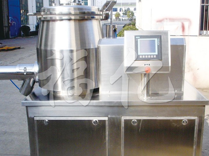 粉體物料與粘合劑在圓筒形容器中由底部混合漿充分混合成濕潤軟材,然后由側(cè)置的高速粉碎槳切割成均勻的濕顆粒。