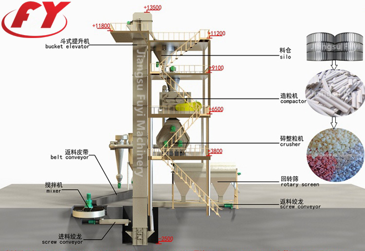 7、回料絞龍:將振動分級篩返回的不合格粉狀物料輸送到加料提升機。