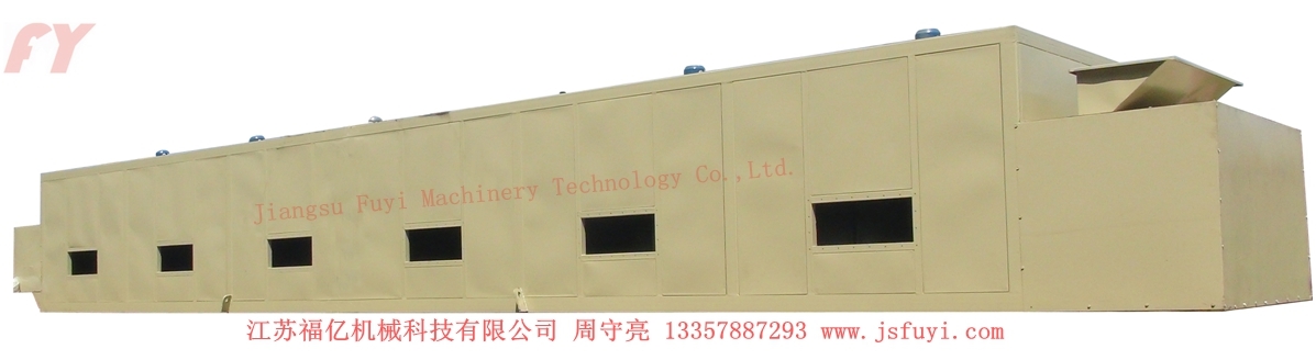 工作原理: 物料由加料器均勻地鋪在網(wǎng)帶上,網(wǎng)帶一般采用12-60目不銹鋼絲網(wǎng),由傳動(dòng)裝置拖動(dòng)在干燥機(jī)內(nèi)移動(dòng)。干燥機(jī)由若干單元組成,每一單元熱風(fēng)獨(dú)立循環(huán),部分尾氣由專門排濕風(fēng)機(jī)排出,廢氣由調(diào)節(jié)閥控制,熱氣由下往上或由上往下穿過鋪滿物料的網(wǎng)帶完成熱量與質(zhì)量傳遞的進(jìn)程,帶走物料水份。網(wǎng)帶緩慢移動(dòng),運(yùn)行速度可根據(jù)物料溫度自由調(diào)節(jié),干燥后的成品連續(xù)落入收料器中。上下循環(huán)單元根據(jù)用戶需要可靈活配備,單元數(shù)量亦可根據(jù)需要選取。